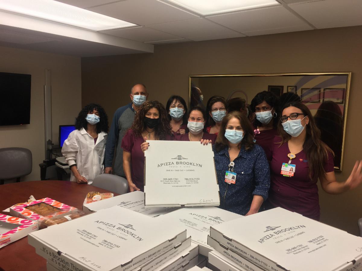 | El jueves 23 y el viernes 23 de abril, Panter, Panter y Sampedro patrocinaron un almuerzo de pizza para varios departamentos del Nicklaus Children's Hospital. El miércoles 15 de abril, Panter, Panter y Sampedro patrocinaron un almuerzo de pizza para el Departamento de Policía de la Villa de Pinecrest. La pizza se compró en el restaurante Pinecrest, apizza brooklyn . “Es importante para nosotros apoyar a nuestros equipos de primera respuesta locales y empresas locales durante este momento increíblemente difícil”, dice Mitch Panter, socio gerente de PPS. “Como defensores desde hace mucho tiempo del apoyo a las personas de nuestra comunidad, esto es lo menos que podemos hacer para mostrar nuestro agradecimiento”. |